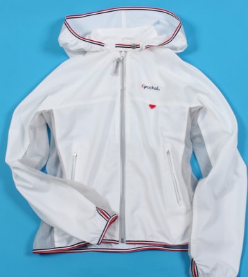 存在をアピールする再帰反射プリントが右肩の後ろにエポカルマークで入っています。
